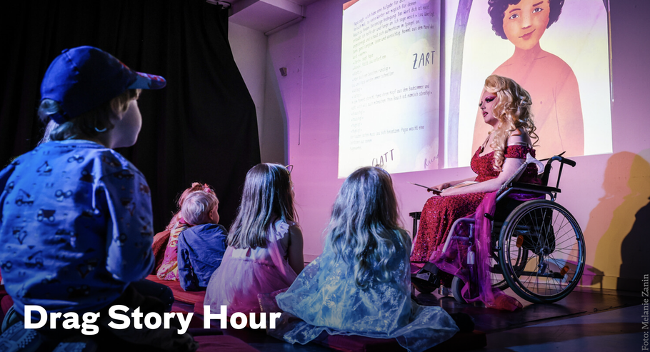 Die Drag Story Hour ist ein interaktives Vorleseerlebnis zur Förderung der Empathie und des Selbstbewusstseins. Die Drag Queen und Pädagogin Mieze verbindet kindgerechte Aufklärungs- und